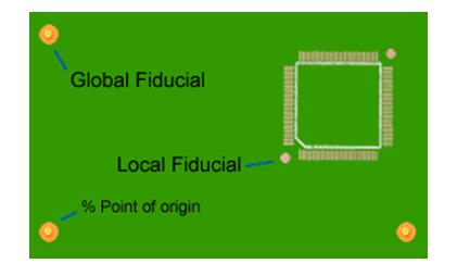 全局基準(zhǔn)標(biāo)記,也稱為面板基準(zhǔn),通常放置在PCB的角落或在組裝過程中將多個(gè)PCB固定在一起的面板導(dǎo)軌上。